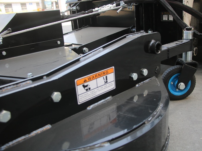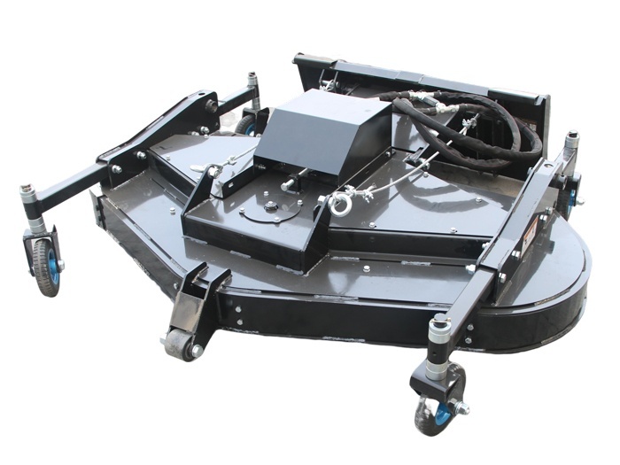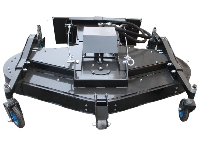 From mowing roadside ditches to large acreages, the 3 blades mower attachment is ideal for all mowing.The front-mounted unit cuts grass before it’s driven over, allowing excellent working visibility of the area to be mowed. Powered by a direct-drive hydraulic motor, three overlapping blades eliminate skips for clean cutting action, discharging cut materials to the rear. And the unique frame design allows the mower to oscillate independently to follow uneven terrain, delivering a close, clean cut.