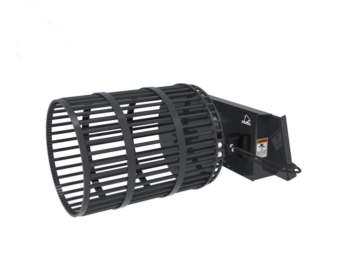 Our Industrial Series Rock Roller attachment is excellent for removing rocks from soil. This unit has a heavy duty universal skid steer mounting plate that is 1" thick for durability. It also uses a heavy duty direct drive motor with a 3" dia spindle with 8,000 lbs capacity on hub. The rods are 1" in diameter and can handle over a ton of material per scoop and screen rock from 2" - 30" dia. The drum turns at a rate of 16 times per minute.