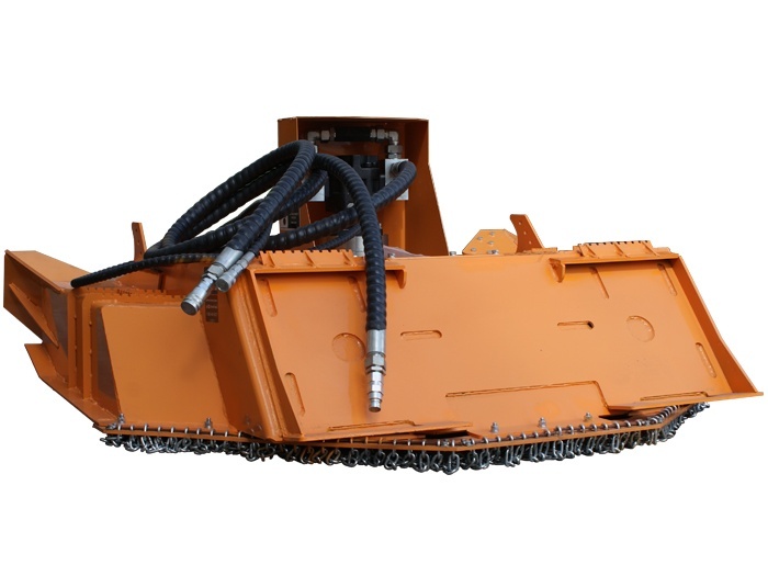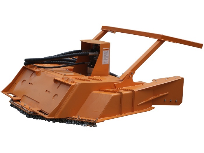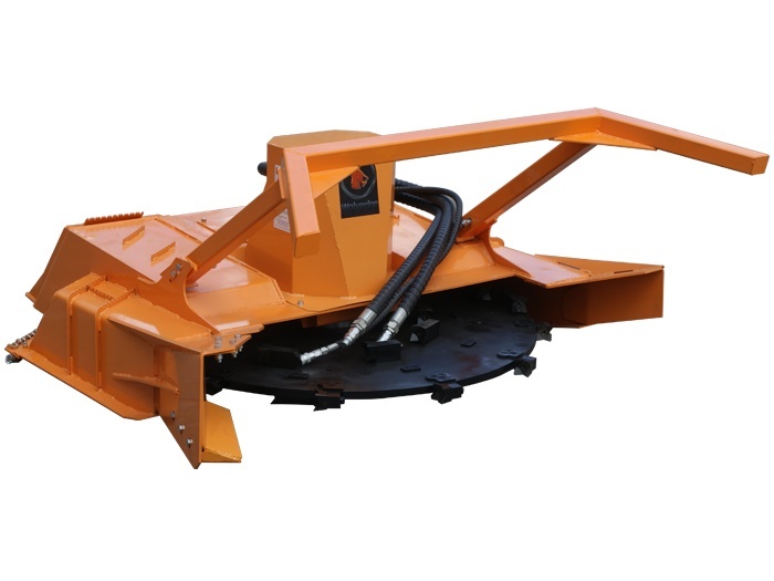 Our High Flow Skid Steer Disc Mulcher is an ideal attachment for tough clearing applications. The cutter is 72" inch overall width and has a cutting disc diameter of 58" inches. It is equipped with an extremely heavy duty disc that is 1" inch thick with replaceable style concave 4 point quad square teeth. High torque gear motor and bearing housing. A hydraulic flow of 30-45 GPM is required for this unit.