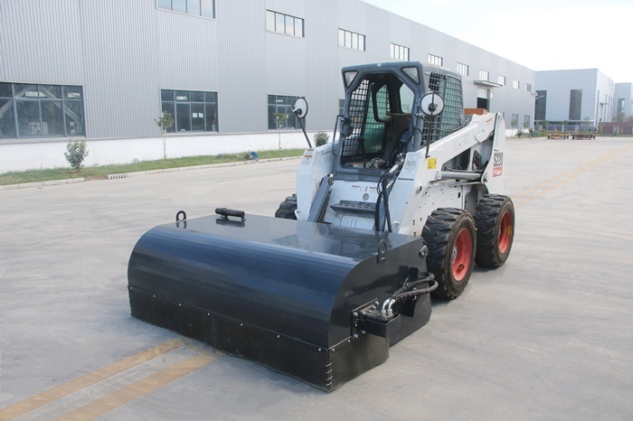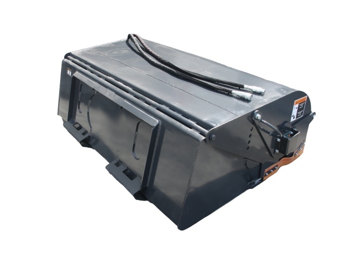 The Skid Steer Box Broom Sweeper Attachment is a great cleanup attachment for those who find the standard angle brooms too messy. This tidy attachment uses an 7" hub and 22" wafers to sweep dirt, light snow, or other debris into the collector bucket and then transport it and dispose using the manual hinging broom. It is user friendly and simple to use to efficiently transport material to a desired location.