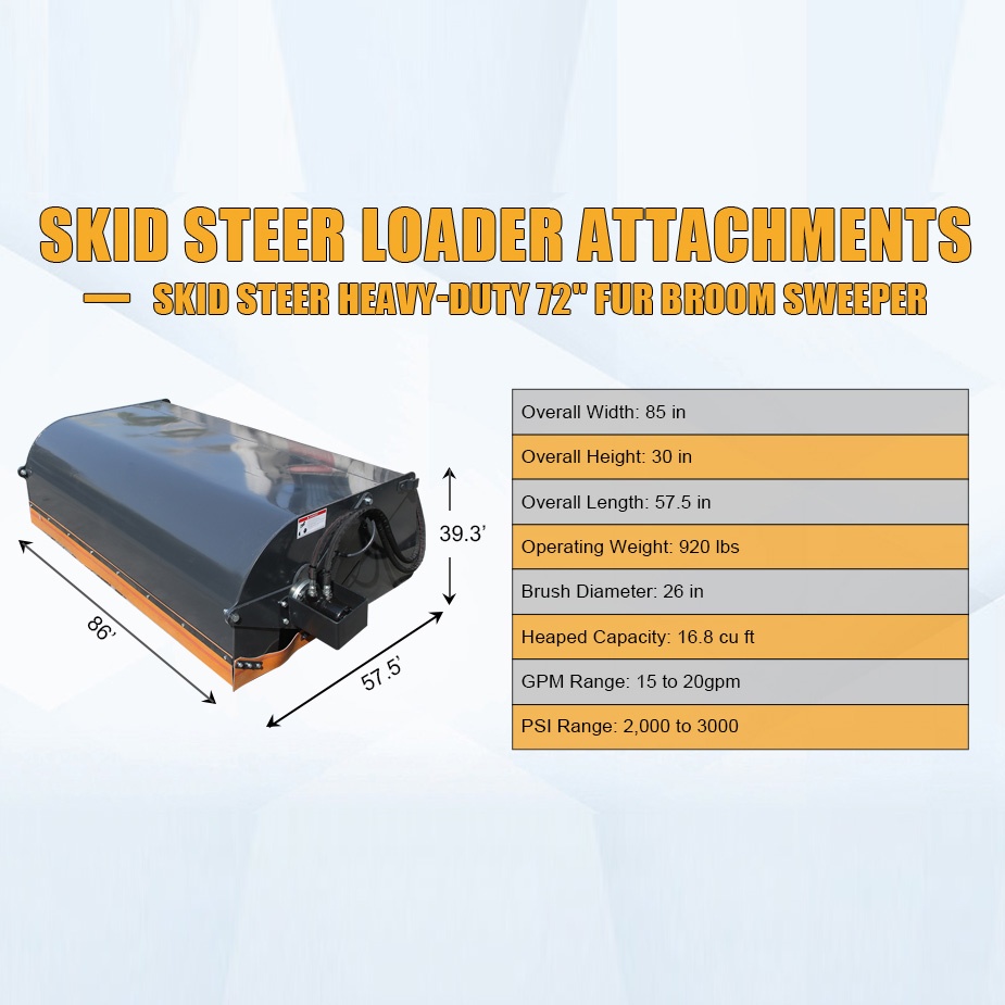 • Mounts to skid-steer quick-attach Available with poly or poly/wire brush