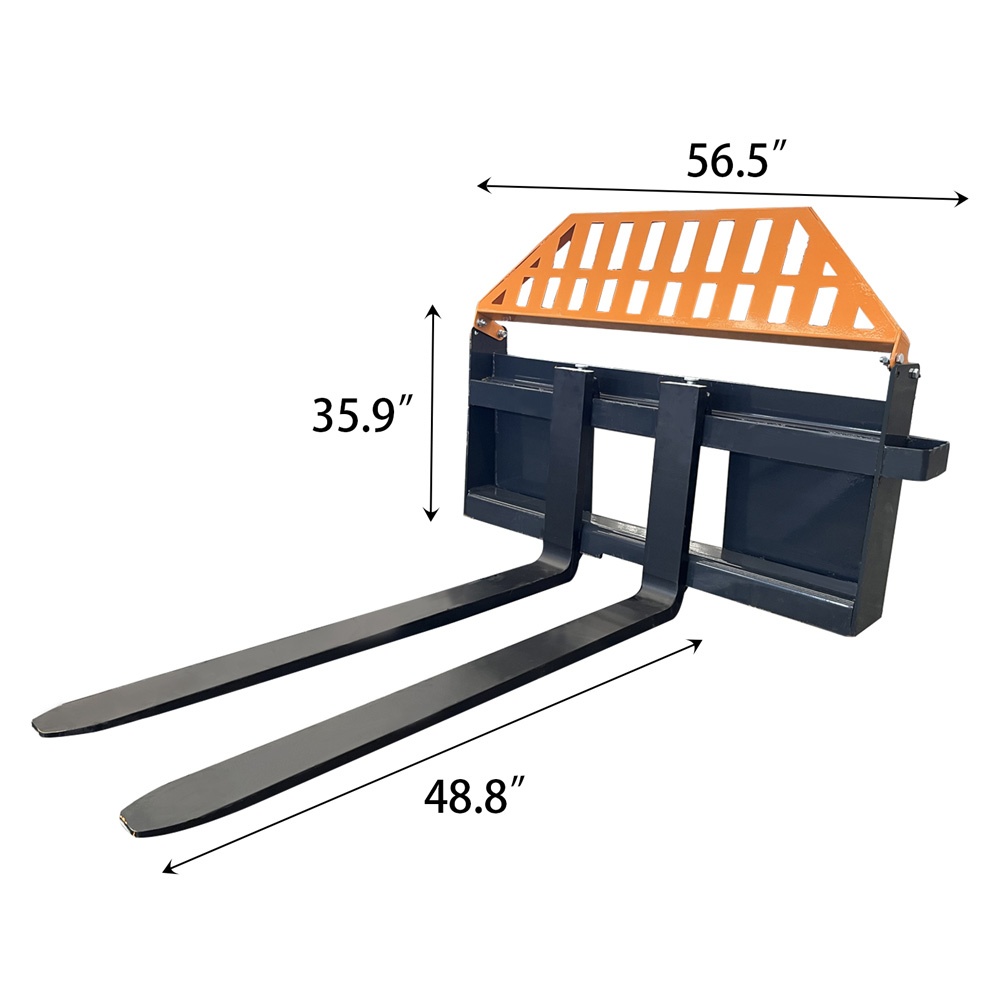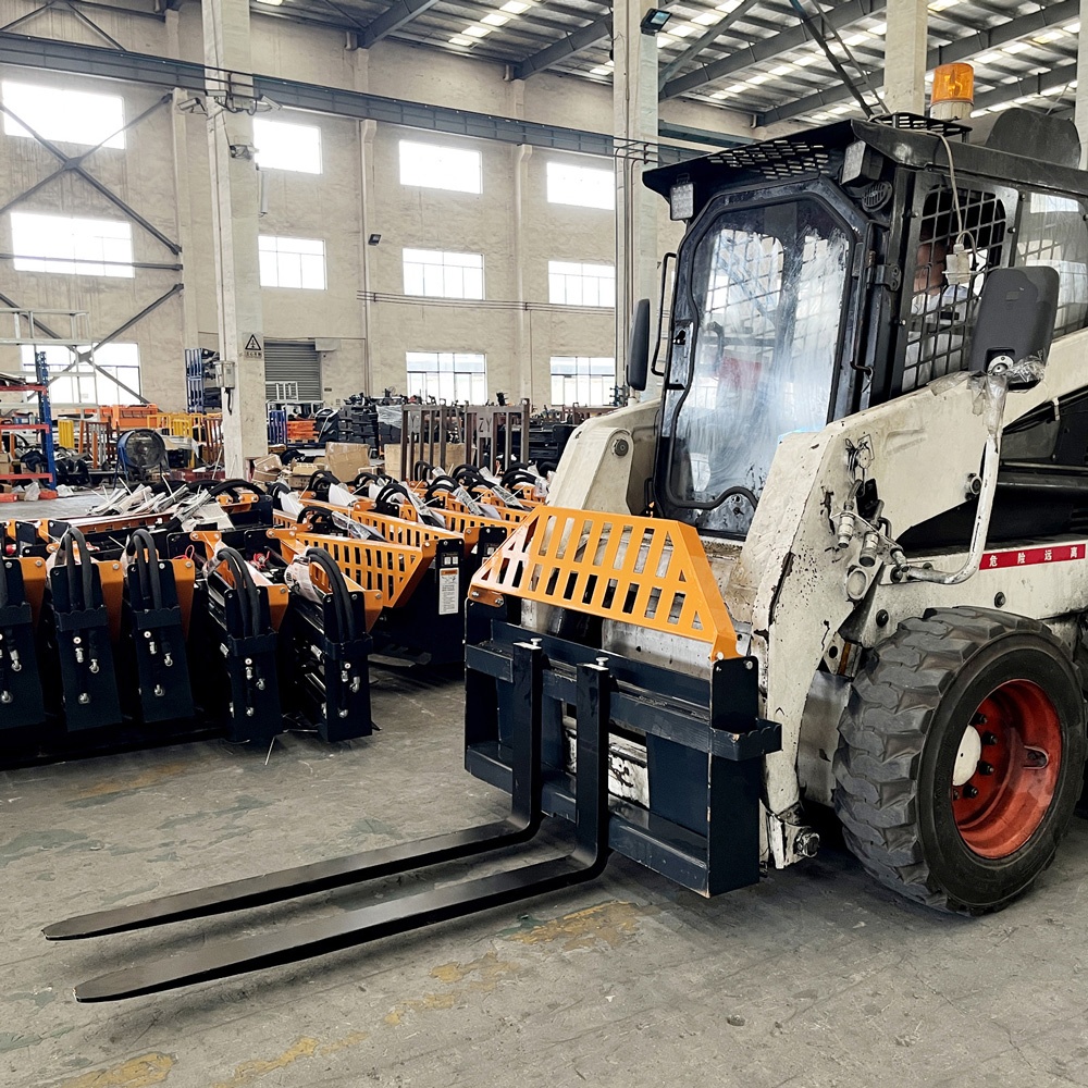 The fork attachment is a versatile loader accessory designed for efficient handling of palletized, stacked, or bundled materials.