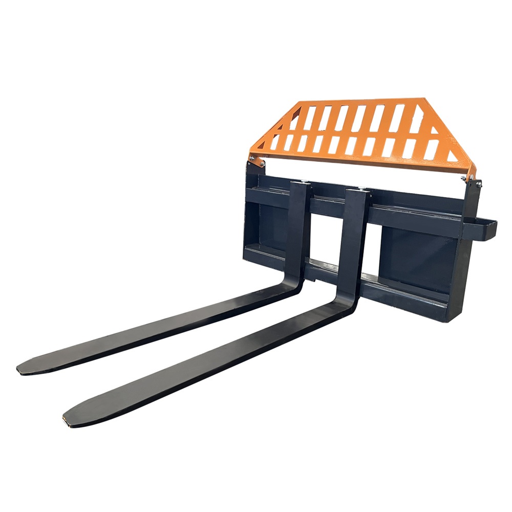 The fork attachment is a versatile loader accessory designed for efficient handling of palletized, stacked, or bundled materials.