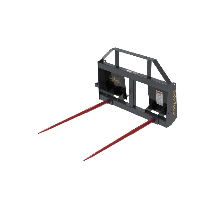 The BS series bale spears are built tough and dual spear design,This design allows the moving of large bales with greater speed and stability while using a skid steer or Ag loader.