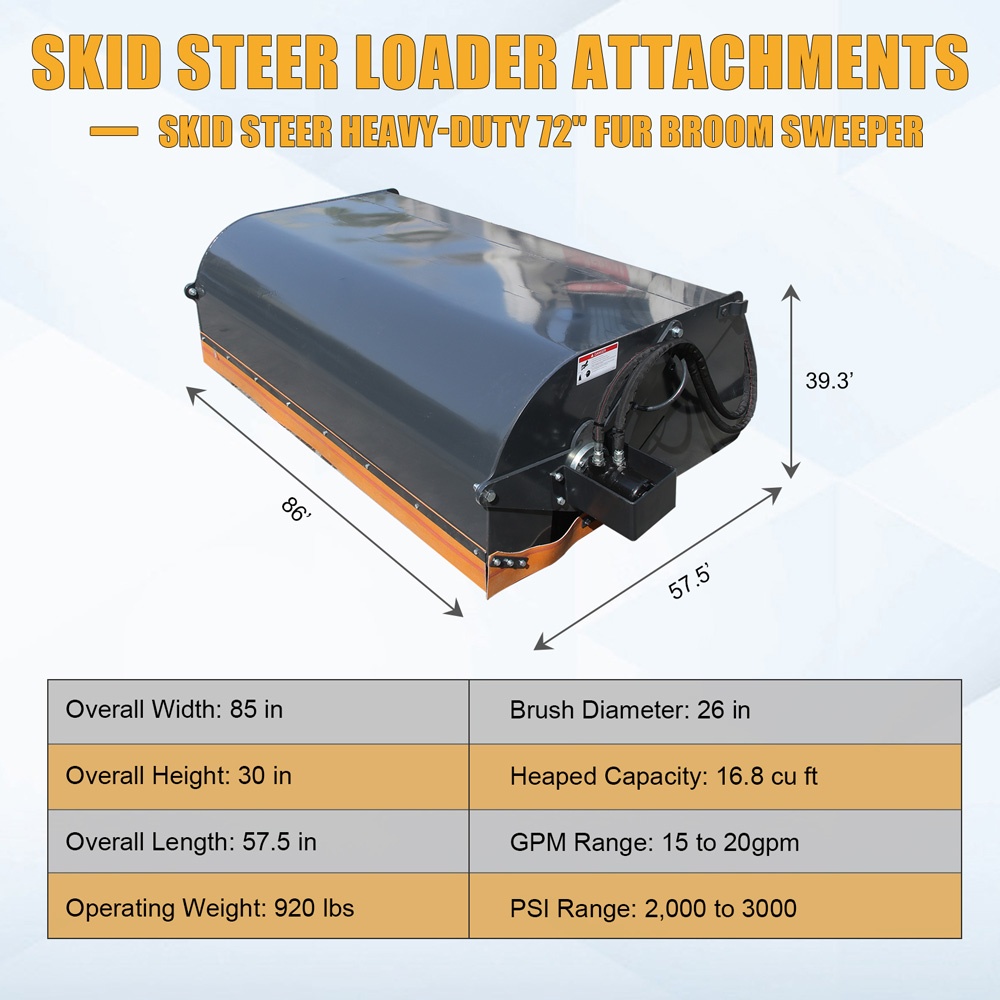 • Mounts to skid-steer quick-attach Available with poly or poly/wire brush